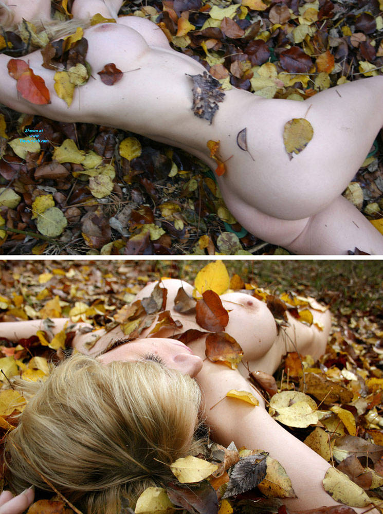 We went out in her back lot and found some Fall Leaves on the ground and she had some fun and rolled around in the naked while I took her picture.
