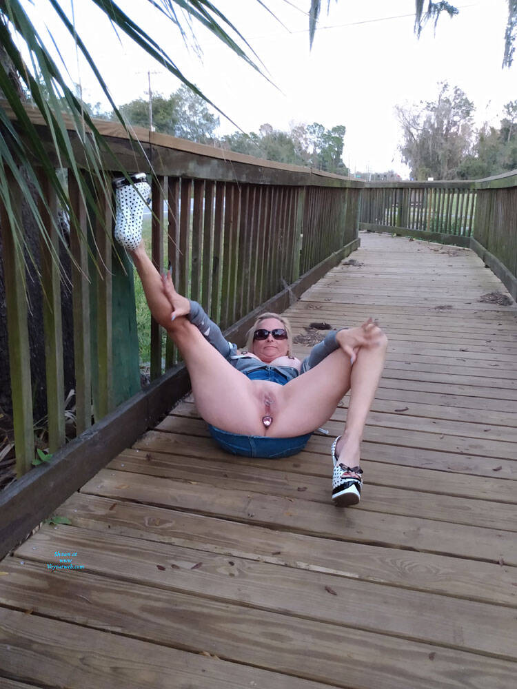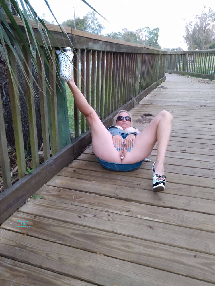 Big Tits Blonde Public Exhibitionist Flashing Outdoors Amateur legs spread wide open Shaved Toys