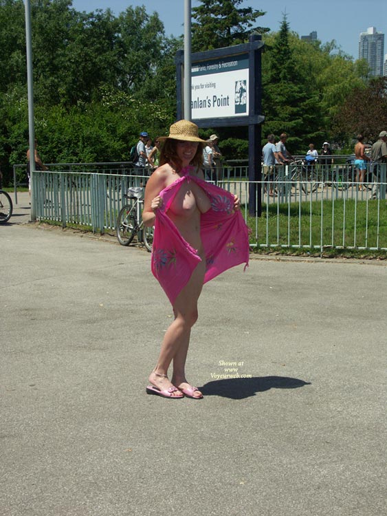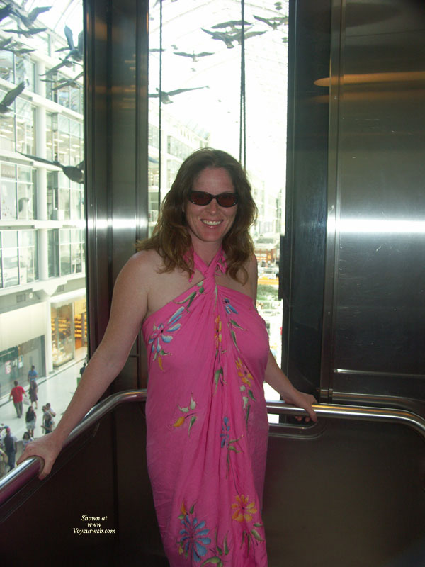 After this pic I decided I wanted to do another one but I wanted to take a minute to think about it. As we were standing there a security guard comes walking over. He asked me if I was exposing myself and I said well I did a little flash. hehehe He asked for ID and neither of us had any on us. Then he starts explaining to us that we were on private property and it's against the law to expose yourself. Then he asks for our names and another security guard shows up and asks what is going on. She was much nicer. She said about the private property bla bla bla but then she said I could go outside and take my top off if I wanted to. Then she said they weren't going to charge us but she wanted us to leave the mall right away. Bummer so that is why I only have seven pics.I hope you enjoyed. It was lots of fun and a big turn on.Bye for nowLisaJane